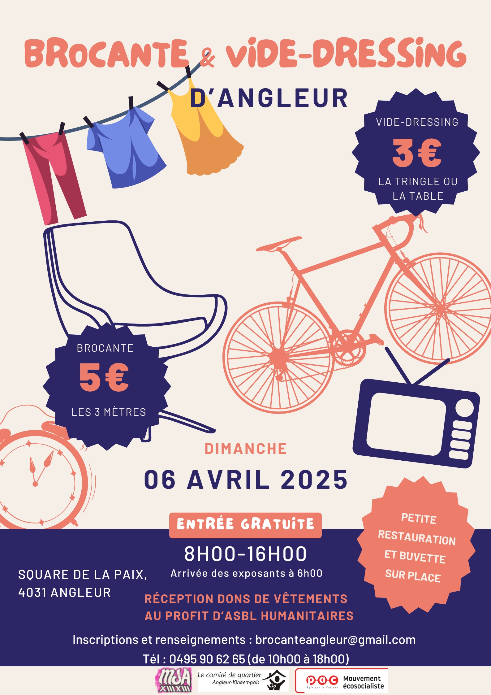 Voici notre nouvelle brocante qui voit le jour en association avec la Maison des Jeunes d’Angleur (MJA) et le Pac !